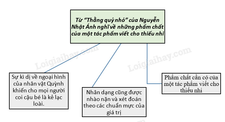 Vẽ sơ đồ tư duy thể hiện luận đề, hệ thống luận điểm và những lí lẽ bằng chứng tiêu biểu của mỗi luận điểm trong hai văn bản: Người con gái Nam Xương – một bi kịch của con người và Từ “Thằng quỷ nhỏ” của Nguyễn Nhật Ánh nghĩ về những phẩm chất của một tác phẩm viết cho thiếu nhi.