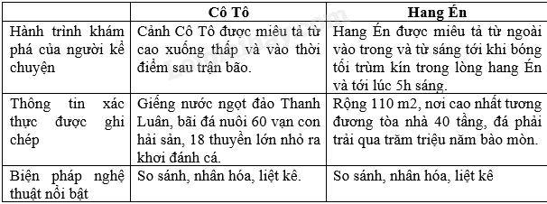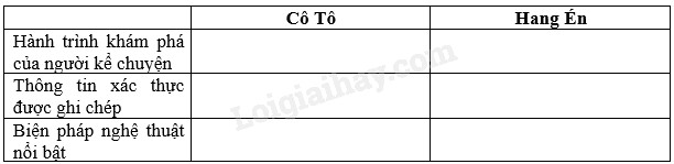 Kẻ vào bảng theo mẫu sau và điền thông tin ngắn gọn về các văn bản Cô Tô, Hang Én.