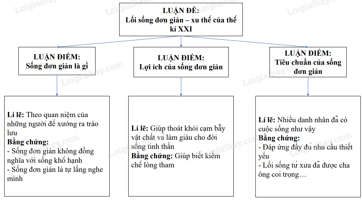 | Văn bản bàn luận về lối sống đơn giản – một lối sống đem đến nhiều lợi ích đang dần trở thành xu thế của thế kỉ XXI. Với những lí lẽ, bằng chứng xác đáng góp phần thuyết phục người đọc nên sống một lối sống đơn giản. |