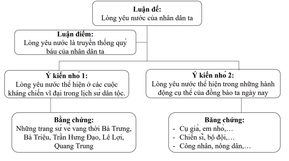 - Luận điểm: lòng yêu nước là truyền thống quý báu của nhân dân ta.