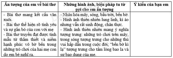 - Khi đọc bài thơ này, hình ảnh mẹ và con đã hiện lên trong tâm trí em.