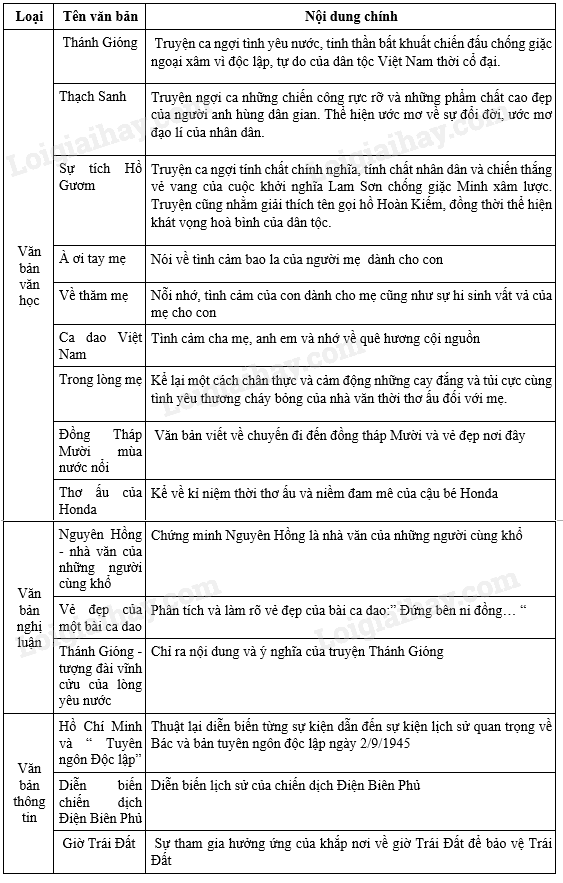 - Văn bản nghị luận: Nguyên Hồng- nhà văn của những người cùng khổ, vẻ đẹp của một bài ca dao, Thánh Gióng- tượng đài vĩnh cửu của lòng yêu nước.