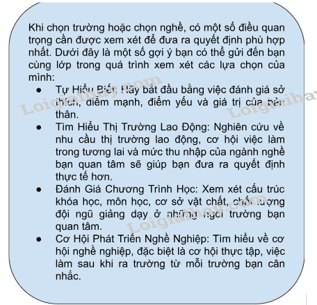 Thiết kế một số tờ rơi thể hiện những điều cần lưu ý về vấn đề chọn trường hoặc chọn nghề, sau đó gửi đến bạn cùng lớp.