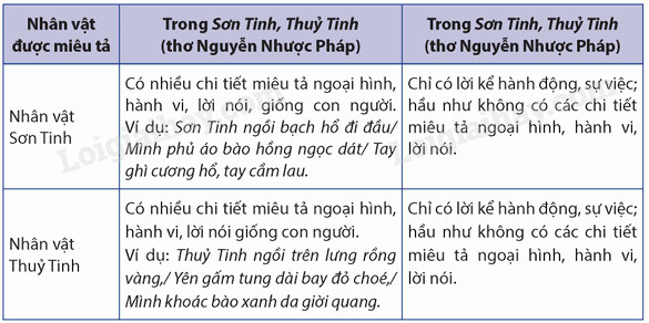 Kẻ bảng sau vào vở. Tìm một số chi tiết thấy sự khác biệt về cách miêu tả nhân vật trong văn bản Sơn Tinh, Thuỷ Tinh (Thơ Nguyễn Nhược Pháp) và văn bản Sơn Tinh, Thuỷ ( truyền thuyết)