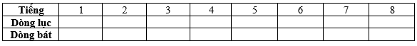 c. Dựa vào kết quả của bài tập b, hãy kẻ bảng bên cạnh vào vở và điền các kí hiệu B, T, BV (thanh bằng, gieo vần) vào các tiếng ở vị trí 2,4,6,8 trong mô hình câu thơ lục bát bên cạnh. (Các tiếng ở vị trí 1,3,5,7 không bắt buộc phải tuân theo luật bằng trắc).