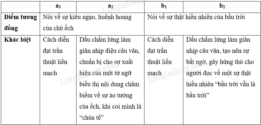 Hãy chỉ ra điểm tương đồng và khác biệt giữa hai cách diễn đạt trong các trường hợp a₁ và a₂; b₁ và b₂ dưới đây. Em thích cách diễn đạt a₁, b₁ hay a₂, b₂ ? Vì sao?