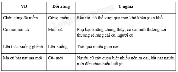 Em có thể tìm trong sách vở, internet hoặc theo hiểu biết của bản thân mình những thành ngữ tương quan đối xứng với nhau