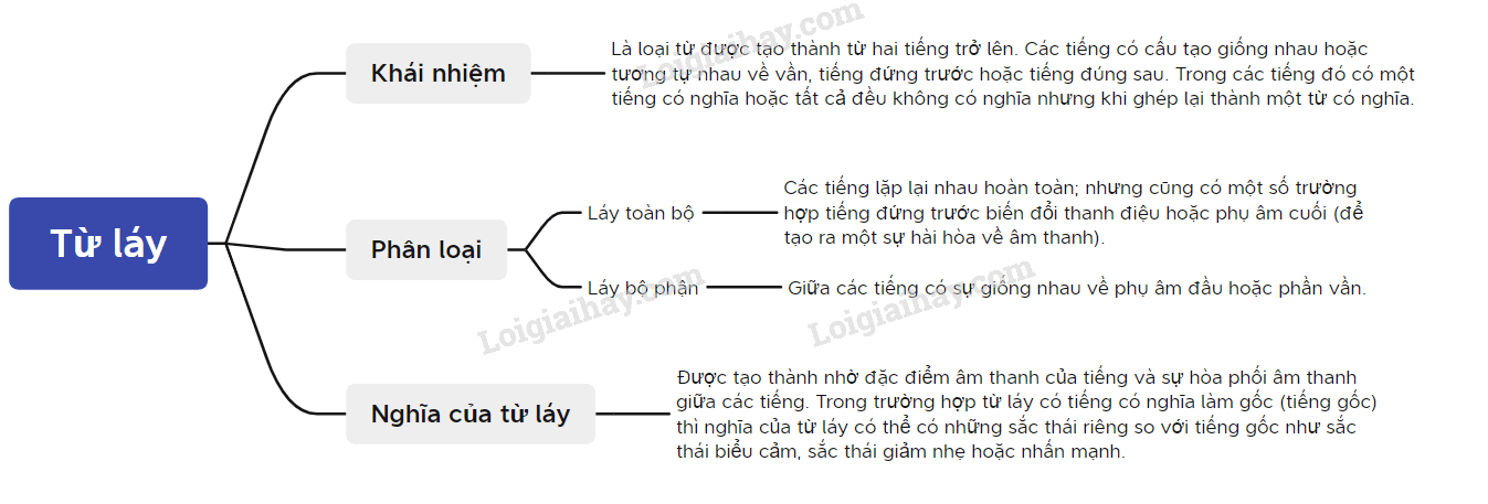 + Từ láy: các từ ngữ vần với nhau về nguyên âm hoặc phụ âm, khi tất cả các từ trong từ đó đều không có nghĩa hoặc một trong hai từ không có nghĩa.