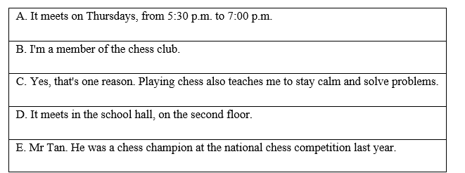 Kate: (4) Mr Tan. He was a chess champion at the national chess competition last year.