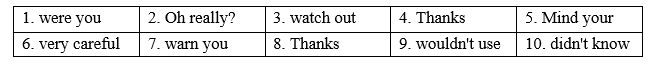 Dad: Oh no! I nearly got hit. (4) Thank/Thanks for the warning.