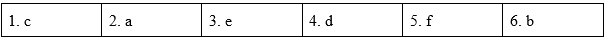 (Nối câu hỏi (1- 6) với câu trả lời (a- f). Sau đó thực hành chúng với bạn cặp.)