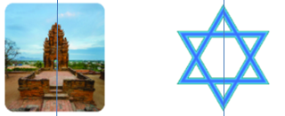 Tính đối xứng là một yếu tố tạo nên sự cân đối, hài hoà của các hình. Tuy nhiên, không phải lúc nào ta cũng có thể gấp hình để biết hình có trục đối xứng hay không. Em hãy quan sát và vẽ phác trục đối xứng của hình Tháp Chàm và ngôi sao sáu cánh dưới đây (nếu có).