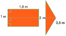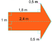 Diện tích hình mũi tên là: \(1,8 + 0,6 = 2,4\left( {{m^2}} \right)\).