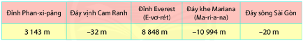 Hãy nói độ cao hoặc sâu của các địa danh sau: