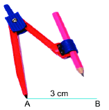 - Vẽ đoạn thẳng \(AB = 3cm\).