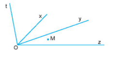Điểm M trong hình sau là điểm trong của các góc: \(\widehat {zOy},\;\,\,\widehat {zOx},\,\,\;\widehat {zOt}\)