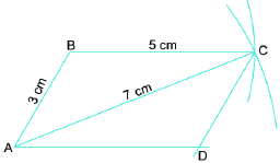 Vẽ hình bình hành ABCD khi biết AB = 3cm, BC = 5 cm và đường chéo AC = 7 cm theo hướng dẫn sau:
