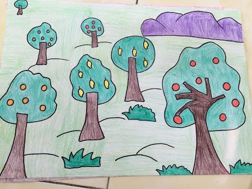 Em vẽ bức tranh khu vườn cây ăn quả của ngoại em.