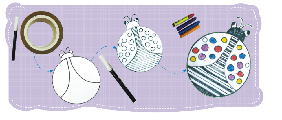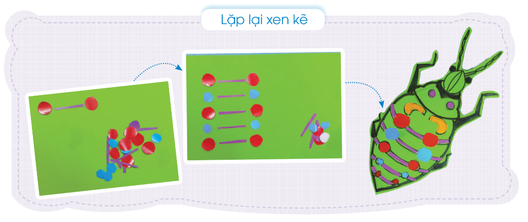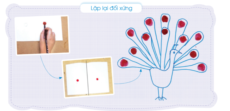 Em có thể lặp lại bằng cách vẽ đối xứng hoặc vẽ xen kẽ vào sự vật như ảnh trên.