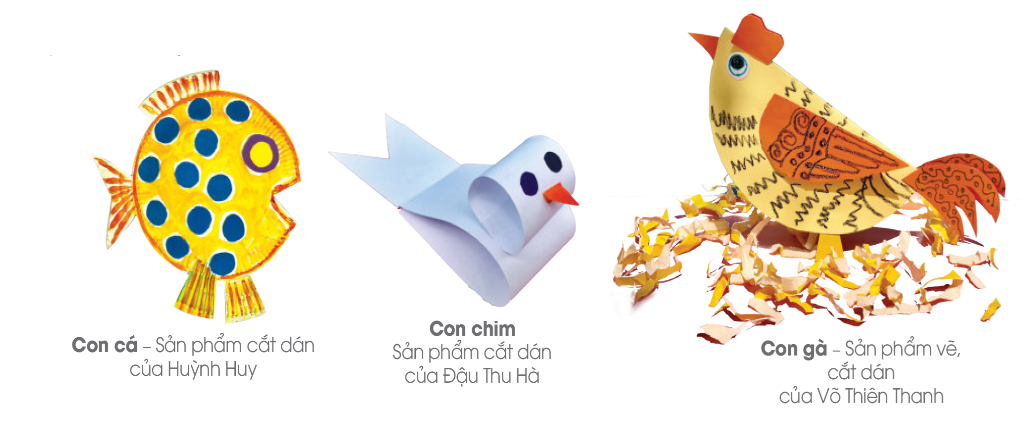 Có nhiều cách tạo hình con vật: Dùng bìa các tông kết hợp với vẽ, trang trí lặp lại/ Tạo hình con vật từ nhiều hình, khối ghép lại
