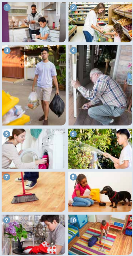 1. Match the household chores below with the pictures. Write 1-10 next to the words.