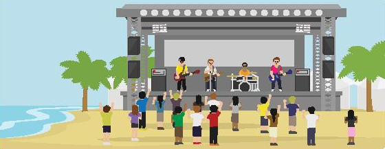 (Nó trông giống như một lễ hội âm nhạc vì có một nhóm nhạc đang biểu diễn với nhạc cụ trên sân khấu.)