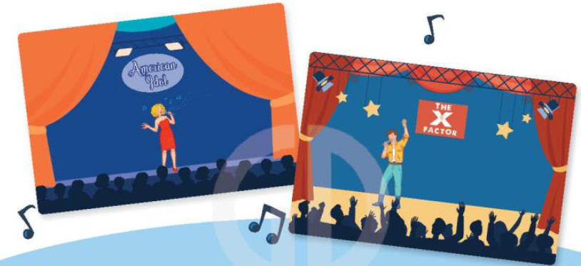 Đó là các chương trình American Idol và The X Factor. American Idol là một chuỗi chương trình truyền hình thực tế của Mỹ, trong đó các ca sĩ đầy tham vọng cạnh tranh để giành được hợp đồng thu âm và giành lấy sự giàu có và nổi tiếng. X Factor là thương hiệu cuộc thi âm nhạc trên truyền hình do nhà sản xuất người Anh Simon Cowell và công ty Syco Entertainment của ông tạo ra.