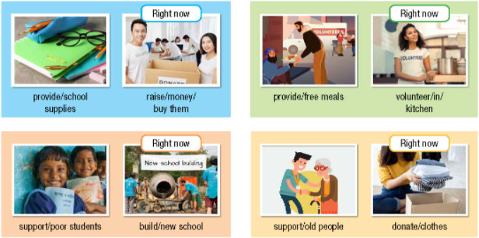(Theo cặp: Nói về các tổ chức từ thiện ở đất nước của em. Họ giúp đỡ mọi người như thế nào?)