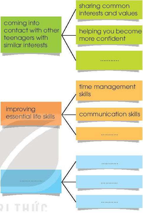 (Hoàn thành sơ đồ sau với các ví dụ và chi tiết giải thích lợi ích của các hoạt động tình nguyện.)