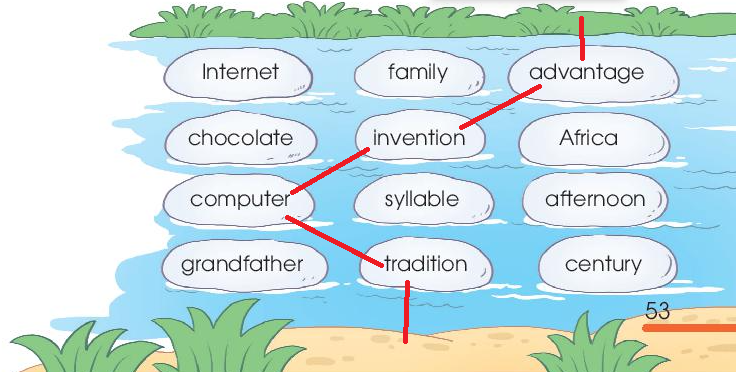 2. Connect all the words with the stress pattern _O_ to cross the river. Then listen and check your answers. Practise saying these words in pair.