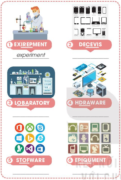 (Sắp xếp lại các chữ cái được gạch dưới trong những từ này. Sử dụng các hình ảnh dưới đây và bảng chú giải thuật ngữ (trang 127) để giúp bạn.)