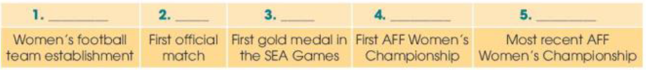 2. Work in pairs. Fill the timeline about women’s football in Viet Nam.