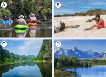 4. Listen to the ecotour descriptions and match them with the pictures. Write A, B, C, or D.