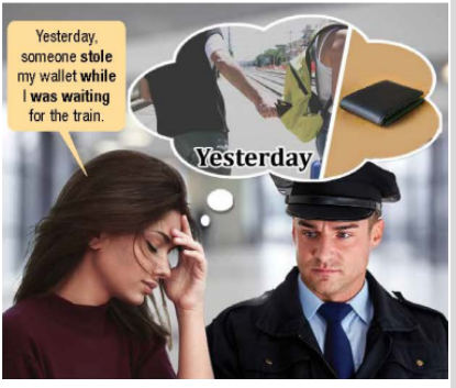 (Tại khách sạn, trong khi tôi đang ngủ, ai đó đã đột nhập vào phòng của tôi và lấy đi ví tiền và điện thoại di động của tôi.)