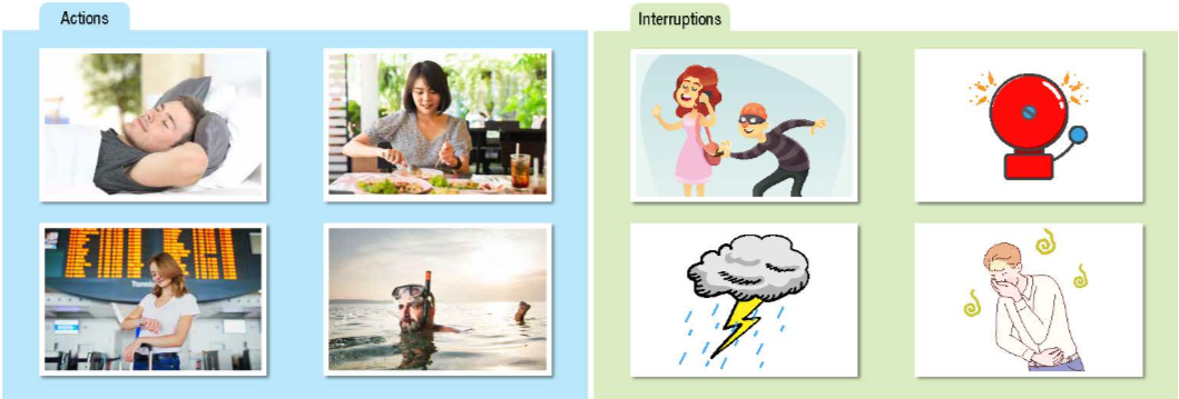 (Em đã có một kỳ nghỉ ác mộng. Theo cặp: Nhìn vào các bức tranh và tạo ra một câu chuyện. Kể câu chuyện của em cho bạn của em.)