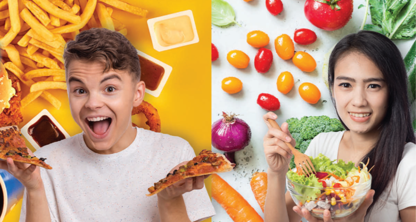 In pairs: Look at the picture. Who do you think eats more healthily? Why? What do you do to stay healthy?
