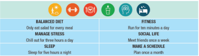 b. In pairs: Decide on a healthy amount for each feature of a healthy lifestyle.