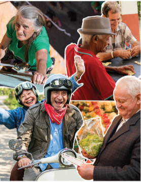In pairs: Look at the pictures. How old do you think these people are? How are they trying to stay healthy and what are some other ways to stay healthy?