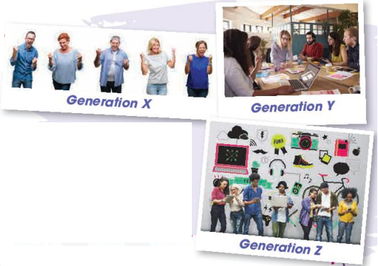 1. Work in pairs. Look at the photos. Discuss what you know about the generation in each picture (e.g. age, characteristics, interests, life experiences). 2. Read the article. Match the highlighted words with their meanings. 3. Read the article again and choose the best title. 4. Read the article again. Tick (✔) the characteristics of each generation according to the article. 5. Work in groups. Discuss the following question.