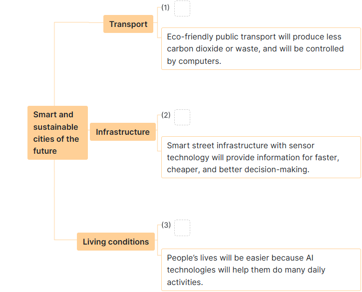 (Làm việc nhóm. Thảo luận về các thành phố trong tương lai sẽ như thế nào và trình bày ý tưởng của nhóm bạn trước cả lớp.)