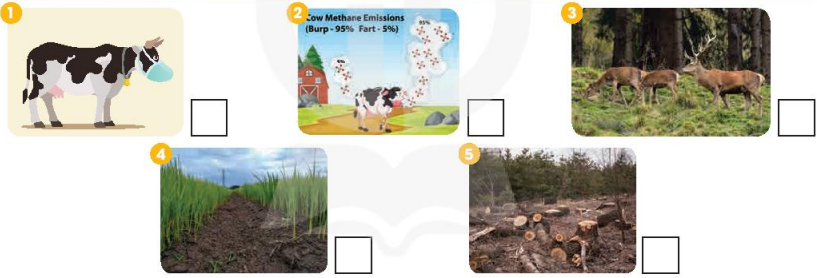 (Đọc văn bản và đánh dấu (✔) vào những bức tranh chỉ ra những cách để giảm sự nóng lên toàn cầu.)