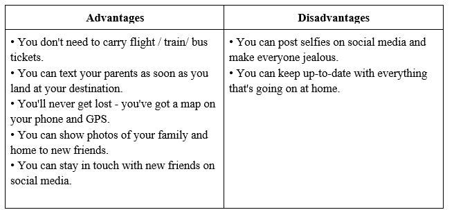 1. Imagine you are going on a journey alone to a distant location. Write A for advantages and D for disadvantages of travelling with a smartphone.