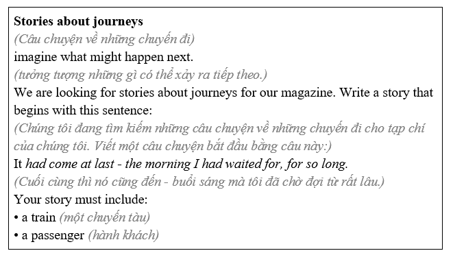 (Viết Câu chuyện của bạn trong 150-180 từ. Sử dụng các ý tưởng trong phần TRỌNG TÂM VIẾT và Ngôn ngữ hữu ích để giúp bạn.)