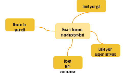 1. What advice would you give to a person to become more independent? Brainstorm ideas in your group, and make a mind-map to present your ideas.