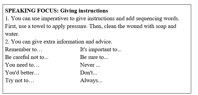 (Chỉ ra cách bạn tìm kiếm sự giúp đỡ, đưa ra và làm theo hướng dẫn.)