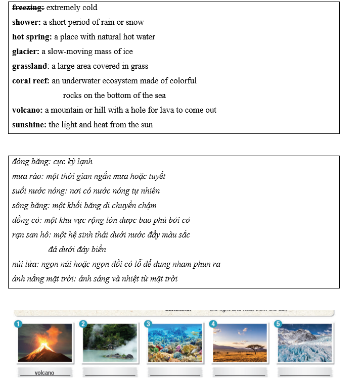 (Đọc các định nghĩa và nối các từ với hình ảnh hoặc điền vào chỗ trống. Lắng nghe và lặp lại.)
