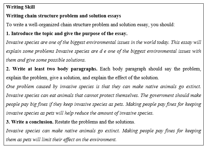 (Đọc về cách viết bài toán cấu trúc chuỗi và bài luận giải. Sau đó, đọc lại bài luận của Melissa và gạch dưới hai vấn đề và hai giải pháp.)