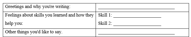 Now, write a letter to your teacher about the things you imagined above. Tell them how you feel about the skills you learned and how they affected your life. Use the Writing Skill box, the reading model, and your speaking notes to help you. Write 150-180 words.