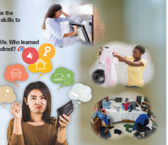 In pairs: What problems do you see in the pictures? Do you think you have the skills to live independently? Why (not)? a. Listen to a podcast about university life. Who learned more independent life skills in high school? b. Now, listen and fill in the blanks. c. In pairs: Which of the independent skills mentioned do you want to improve? Why?