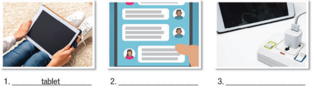 In pairs: What is happening in the picture? Do you like using technology at school? Why (not)? a. Match the underlined words to the pictures and definitions. Listen and repeat. b. In pairs: Talk about how and when people use smart devices. What do you like to do on a smart device? Why? a. Read the email and choose the best subject line. b. Read and circle the answer that best fits the numbered gap.